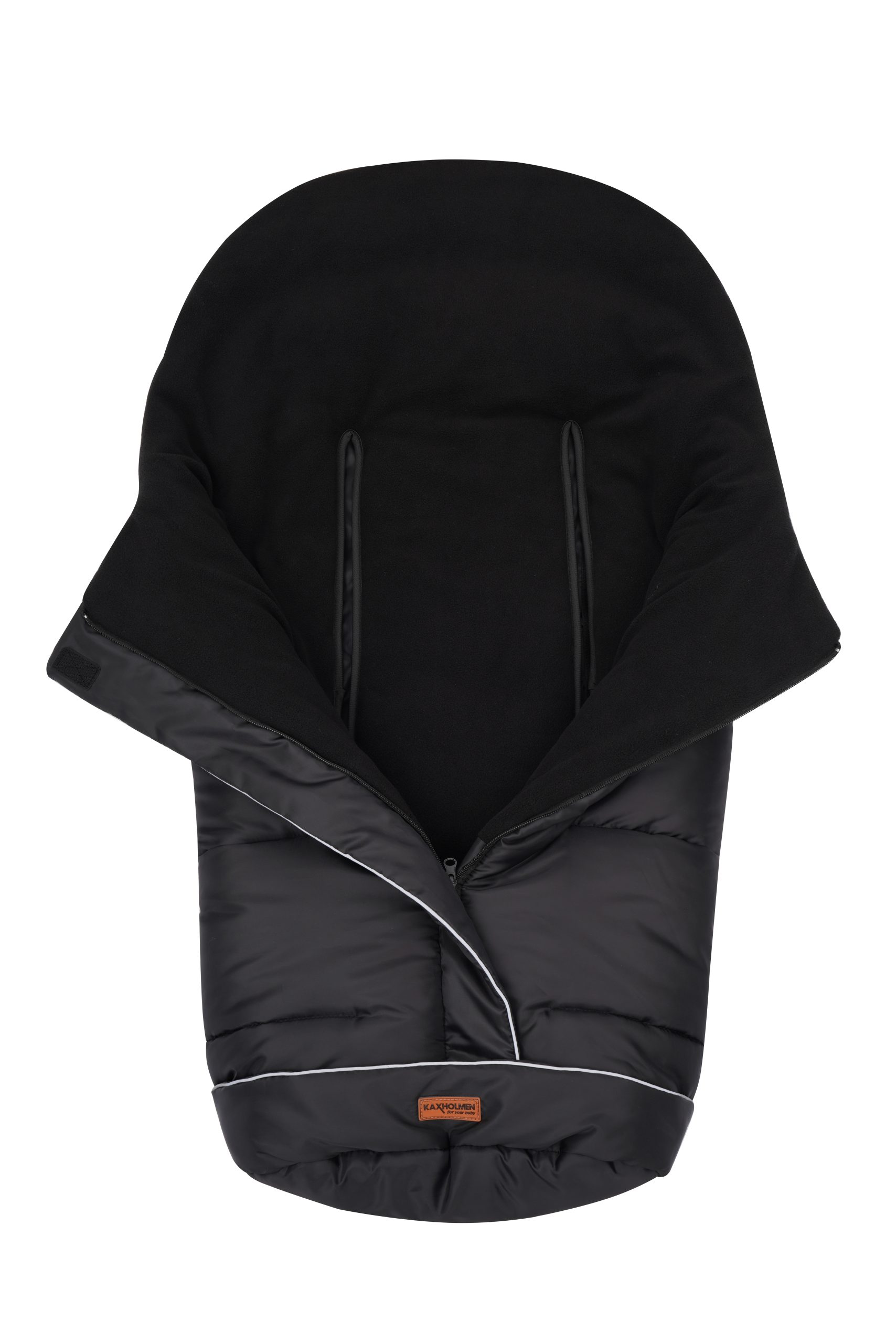 Vind och vattenavisande. Utsida nylon insida ultramjuk lyxig korallfleece. Antiglid på baksidan. Uttag för 5-punktsele. Storlek 98×45 cm.