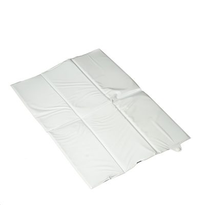 Mjuk skötbädd som man lätt tar med sig på resan. En tryckknapp håller den ihopvikt till man behöver den.